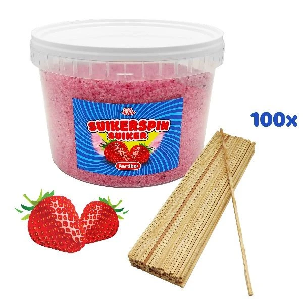 2 KG Aardbei Suikerspinsuiker + 100 Stokjes