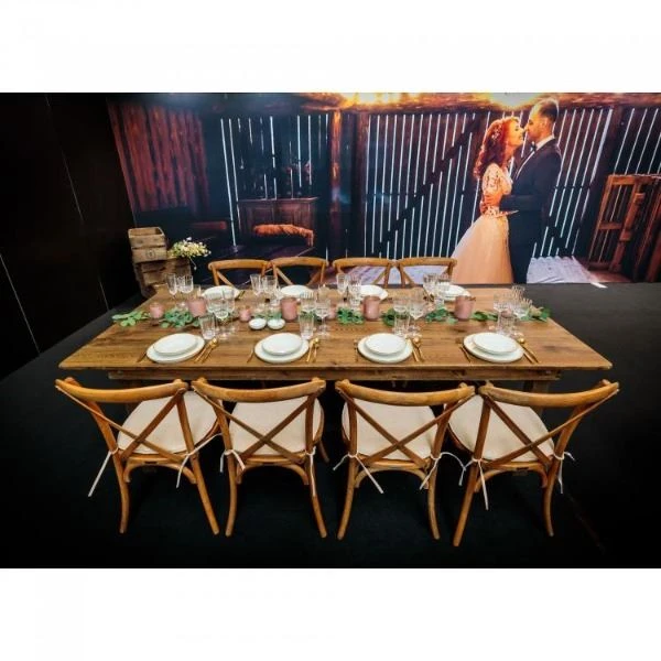 Inklapbare prachtige, stevige Fermette tafel. Deze klaptafels zijn geschikt voor elk feest geeft warmte en gezelligheid.