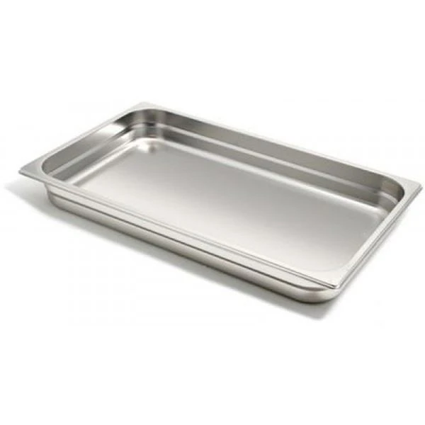 Deze handige gastronoombak of inzetbak kan je gebruiken om je maaltijd aan je gasten te serveren. Deze komt in formaat 1/1, dit wil zeggen dat er hiervan 1 stuks in één chafing dish passen. Zo verdeel je de chafing dish in één compartiment. In de chafing dish zit water, dat warm wordt gehouden door een brandpasta patroon. Zo verwarm je het eten in de gastronoombakken volgens de au bain marie kooktechniek. Inhoud van 1 gastronoombak 1/1 bedraagt 9 liter.