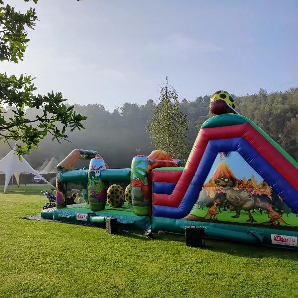 Deze Jurassic Park thema obstakelbaan brengt ongelofelijk veel fun op jouw verjaardagsfeestje, evenement, sportclub of vereniging. Deze stormbaan beschikt over een groot speeloppervlakte, toffe multifun en een hoge glijbaan. Hiermee kan je miljoenen jaren plezier maken.