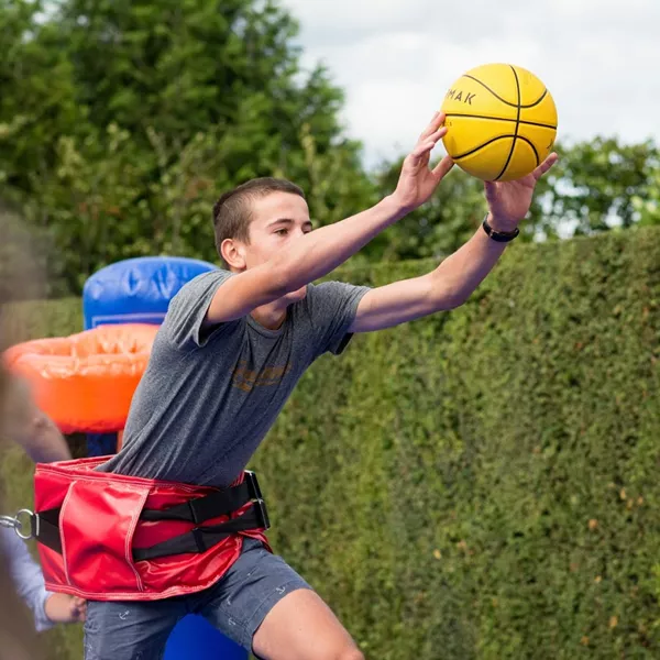 Speel de ultieme Klaver Bungee Run battle met 4 personen, trek je tegenstander meer naar jouw kant en scoor zoveel mogelijk punten in de basketring en win! Teambuilding, sportdag of bedrijfsfeestje?