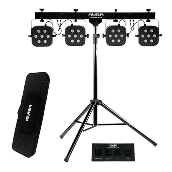 Deze LED-statief bestaat uit vier RGB LED-spots, met per spot 7 Tri-LED modules, waarbij je talloze kleurencombinaties kan maken. Natuurlijk zijn er diverse ingebouwde shows en chases en ook een muziek-gestuurde modus aan boord, voor synchronisatie van muziek en licht. De gevoeligheid van de ingebouwde microfoon is instelbaar. Met de Master/Slave-modus zijn diverse LED-sets gekoppeld te gebruiken, voor een indrukwekkende output.