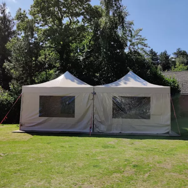 We kunnen meerdere vouwtenten aan elkaar koppelen, zodat er een grotere tent ontstaat.