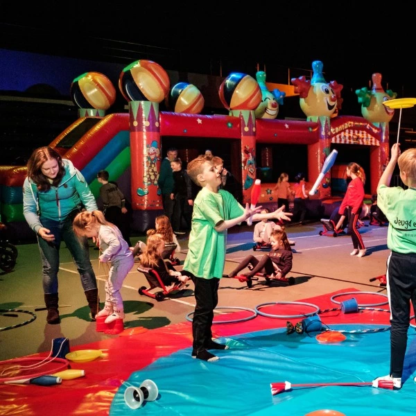 Het thema Circus spreekt tot de verbeelding van de allerkleinste kinderen in deze hindernisbaan Mega Clown. Voorzien van een groot springgedeelte en een leuk glijbaan, geeft dit uren spring en speelplezier! Klauter, spring, glijd en klim door deze leuke hindernisbaan.