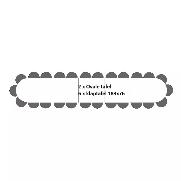De ovale tafel biedt voldoende ruimte voor 30 personen en is ideaal voor evenementen, feesten of vergaderingen. De tafel is eenvoudig op te stellen, dankzij de inklapbare poten! De combinatie van enkele klaptafels en twee halfronde aanzetstukken maakt de tafels gemakkelijk te transporteren.