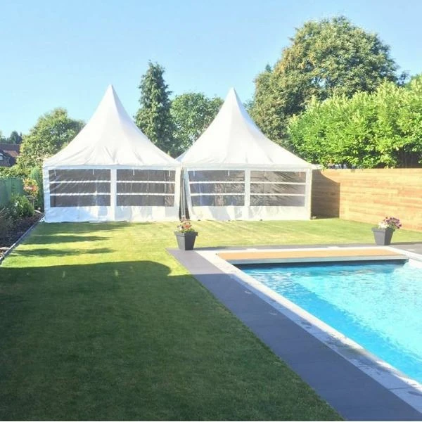 Aan elke zijde kan een tweede pagodetent worden gekoppeld, zo kunnen we allerlei constructies maken.