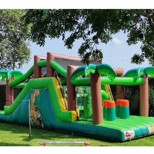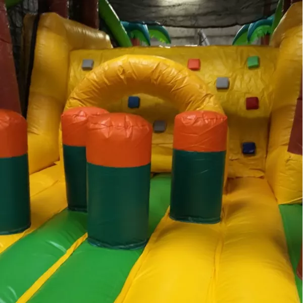 Op Palm Beach voel je je direct op het strand. In een vakantie-sfeertje tussen de palmbomen kan je naar hartelust springen en ravotten! Er is een groot speelvlak om te springen, te klimmen, te boksen en te spelen. Na het klauteren doorheen deze stormbaan, glijd je naar beneden via de hoge glijbaan. en klauter je uit de jungle.