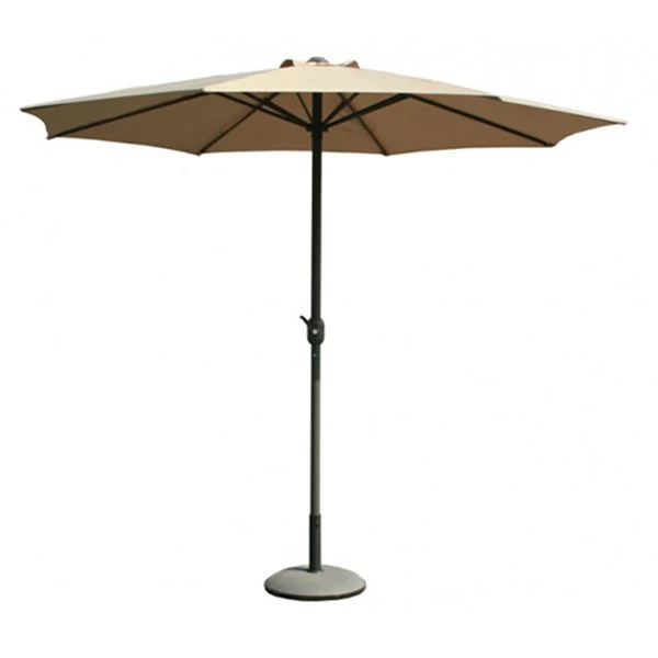 Grote parasol met draagvoet in beton. Deze parasol biedt bescherming tegen zon, ideaal voor een tuinfeest. De betonnen draagvoet heeft een gewicht van +-20 kg.