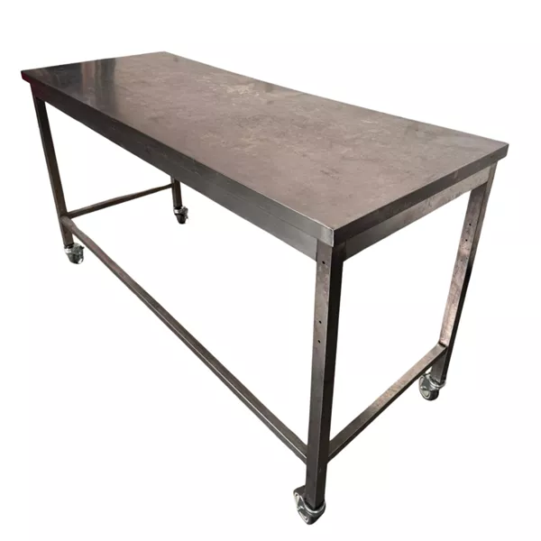 Met deze RVS-werktafel voeg je een extra werkoppervlak toe aan elke professionele horecazaak. Een robuuste tafel met een sterk RVS-werkblad, dankzij de draagkracht van 150-200 kg is deze werktafel zeer geschikt voor het bereiden van voedsel en het plaatsen van keukenapparaten. Dankzij de stevige wielen, kan je deze veilig en snel verplaatsen.