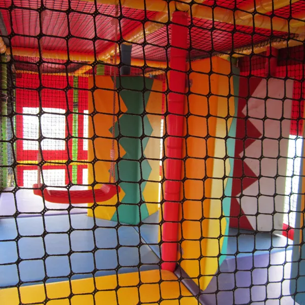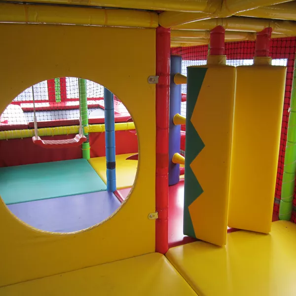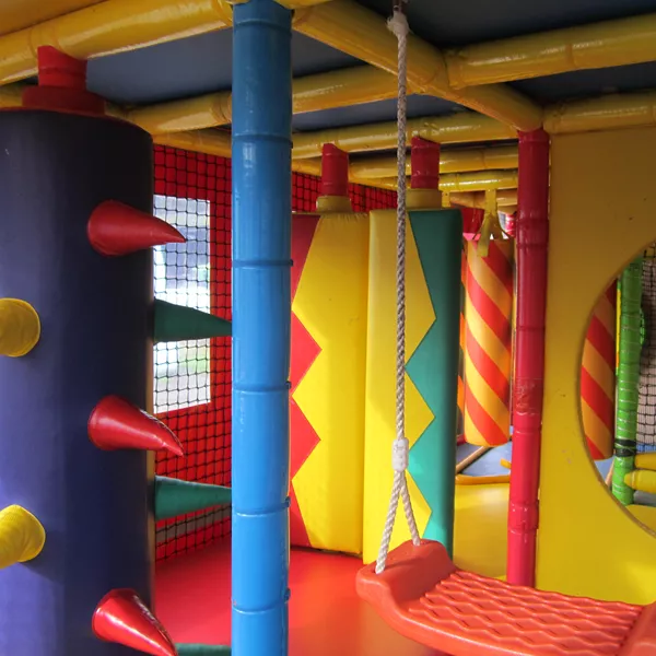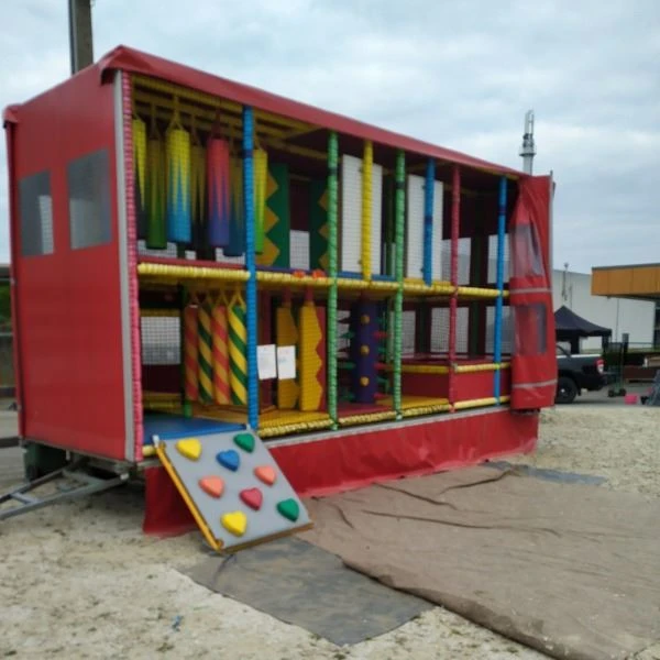 Deze kleurrijke attractie heeft het allemaal: een trampoline, bokszakken, hindernissen, schommels – met één ingang.