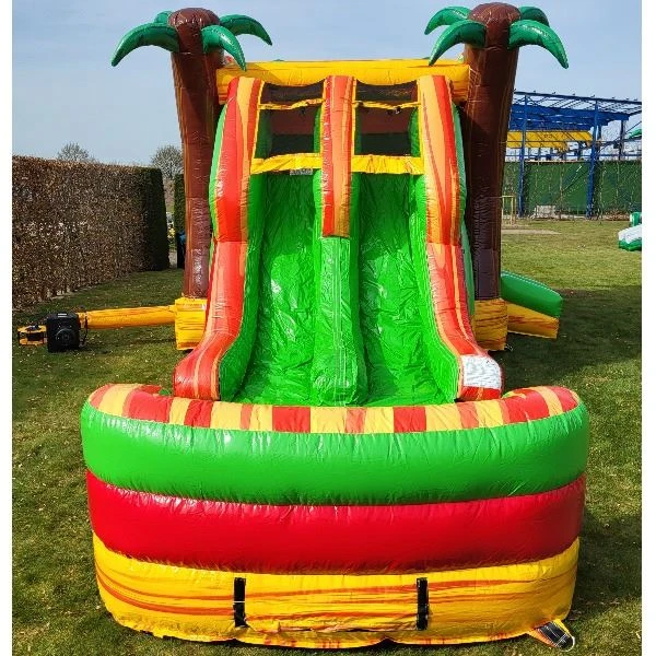 Dit springkasteel Tropical brengt ongelofelijk veel fun op jouw feest, evenement, sportclub of vereniging. Het thema van de jungle spreekt tot de verbeelding van de allerkleinste kinderen. Voorzien van een zwembadje voor extra fun en super leuk op warme dagen.