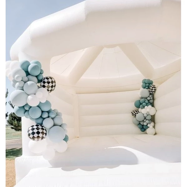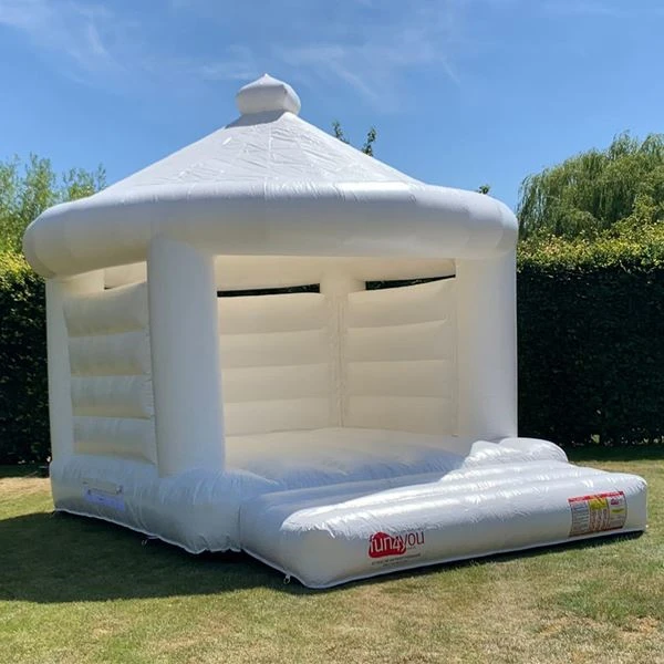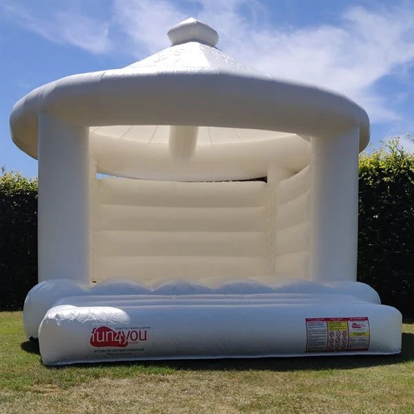 Dit uniek wit springkasteel is een blikvanger voor op jouw bruiloft of huwelijksverjaardag! Maak leuke huwelijkfoto's van amuserende bruidskinderen op je trouwdag of misschien zelfs de bruid en bruidegom.