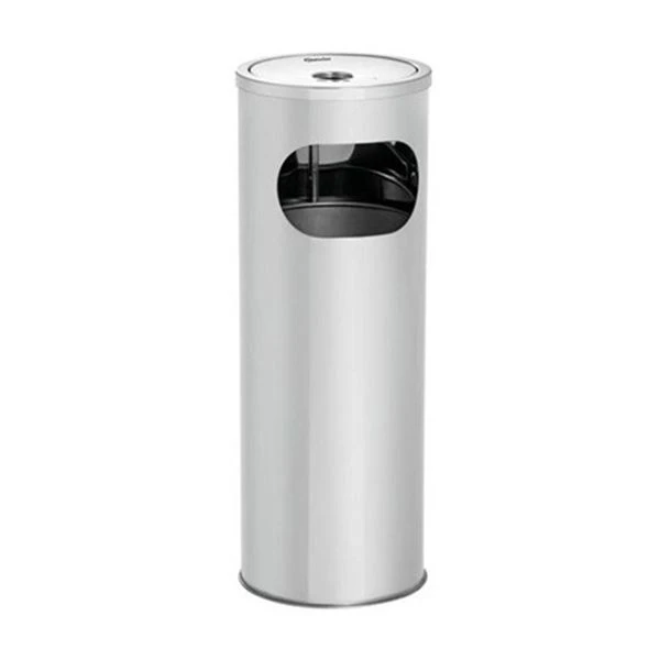 Rechtstaande lichtmetalen hoge asbak, ideaal voor in een rokerszone te plaatsen. Makkelijk leeg te maken.
