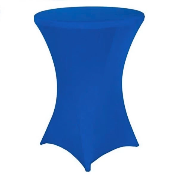 Blauwe stretch statafelhoes, geeft een zeer nette uitstraling. Te combineren met een statafel. Je hoeft dit zelf niet uit te wassen na gebruik.