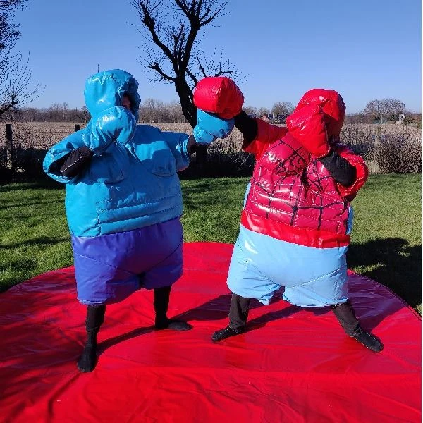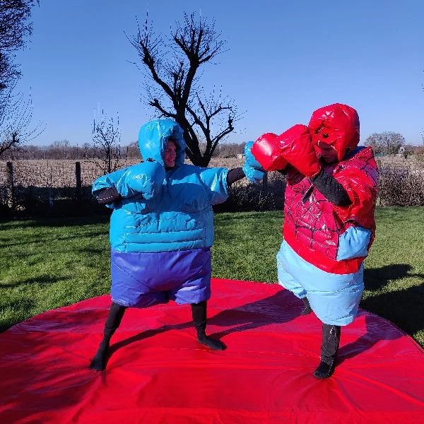 Sumoworstelpakken is een grappige en interactieve attractie, die niet al te veel plaats inneemt. Zoek een tegenstander uit en betreed samen de mat. Na het buigen is het de bedoeling dat je elkaar probeert te vloeren of probeert elkaar van de sumoworstelmat te krijgen. De hoofdbescherming, handbeschermers en zachte mat zorgen ervoor dat je dit spel veilig kan spelen. Dit spelletje zorgt ongetwijfeld voor de meest hilarische momenten op jouw feest.