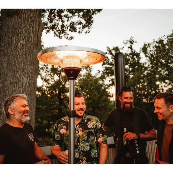 Geniet van veilige, aangename infraroodstraling met de Oron elektrische terrasverwarmer. Met 2 instelbare vermogensniveaus (1.000 W en 2.000 W) en eenvoudig in hoogte verstelbaar (1,90 - 2,26 m) biedt deze heater op maat gemaakte warmte voor elke gelegenheid. Robuust en weerbestendig dankzij IP44-bescherming en gemaakt van roestvrij staal en aluminium. Perfect voor een comfortabele avond buiten.