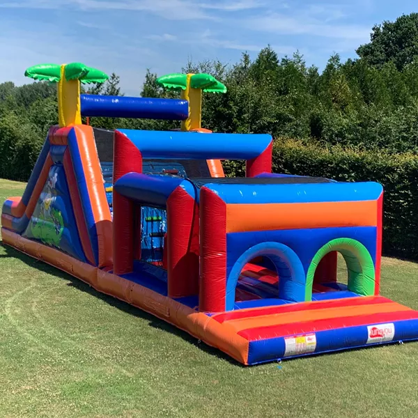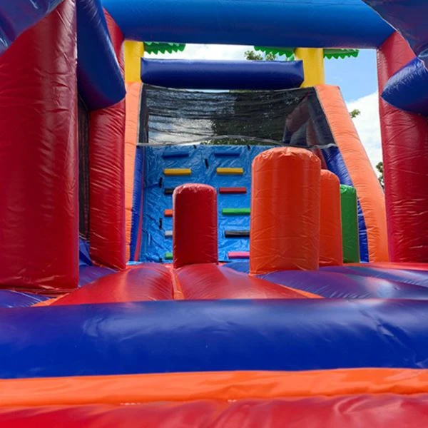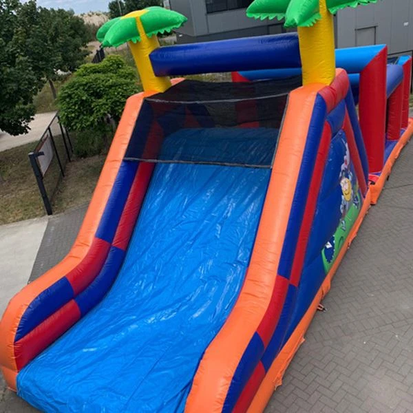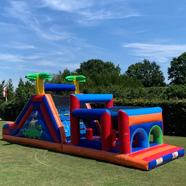 Deze 14 meter lange hindernisbaan is ontworpen voor echte vikings! Er is een groot speelvlak om te springen, te klimmen, te boksen en te spelen. Na het klauteren doorheen deze stormbaan, glijd je naar beneden via de grote glijbaan.