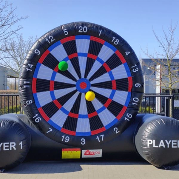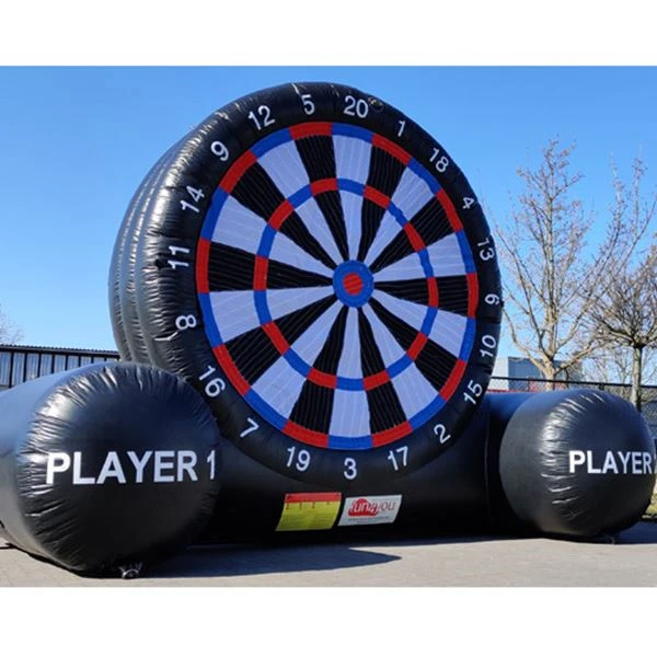 Voetbaldarten is een leuke mix tussen de twee populaire sporten voetbal en darts. De bedoeling van deze attractie is dat je zoveel mogelijk punten scoort. Schop de bal tegen het bord en hij blijft plakken op het scorebord. Zo weet iedereen hoeveel punten je hebt gescoord met dit balspel! Lukt het jou om in de bullseye te schieten? Veel plezier verzekerd.