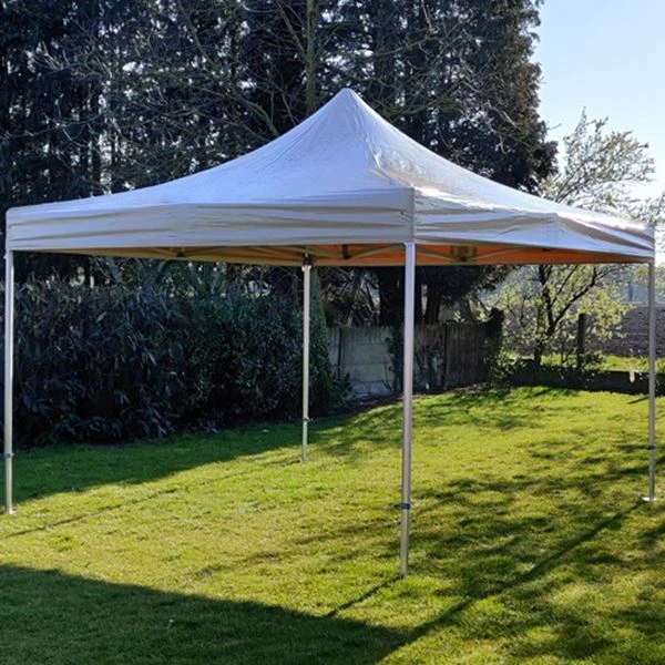 Organiseer je een tuinfeestje en wil je snel een tent kunnen opzetten als het zou beginnen regenen? Dan is onze luxe vouwtent perfect geschikt. Onze Luxe Vouwtent bezet een oppervlakte van 4 meter op 4 meter. Hiermee heb je voldoende zitplaatsen voor 16 personen of 20 staanplaatsen. De doorloophoogte bedraagt 2,0 meter en de hoogste top van de tent bedraagt 3,8 meter.