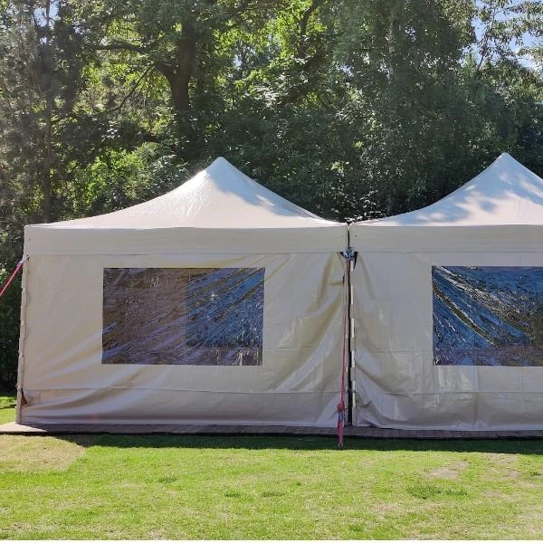 We kunnen meerdere vouwtenten aan elkaar koppelen, zodat er een grotere tent ontstaat.